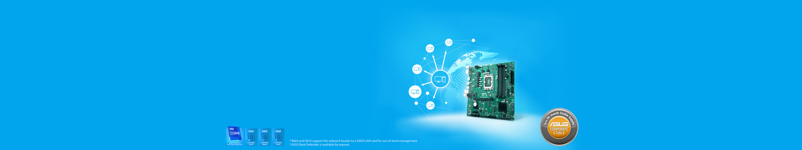 ASUS Business-moderkort har förbättrade funktioner för att underlätta din IT-verksamhet, inklusive omfattande systemskydd, stabilitet och tillförlitlighet dygnet runt och en förbättrad hanteringssvit för enklare anpassning.