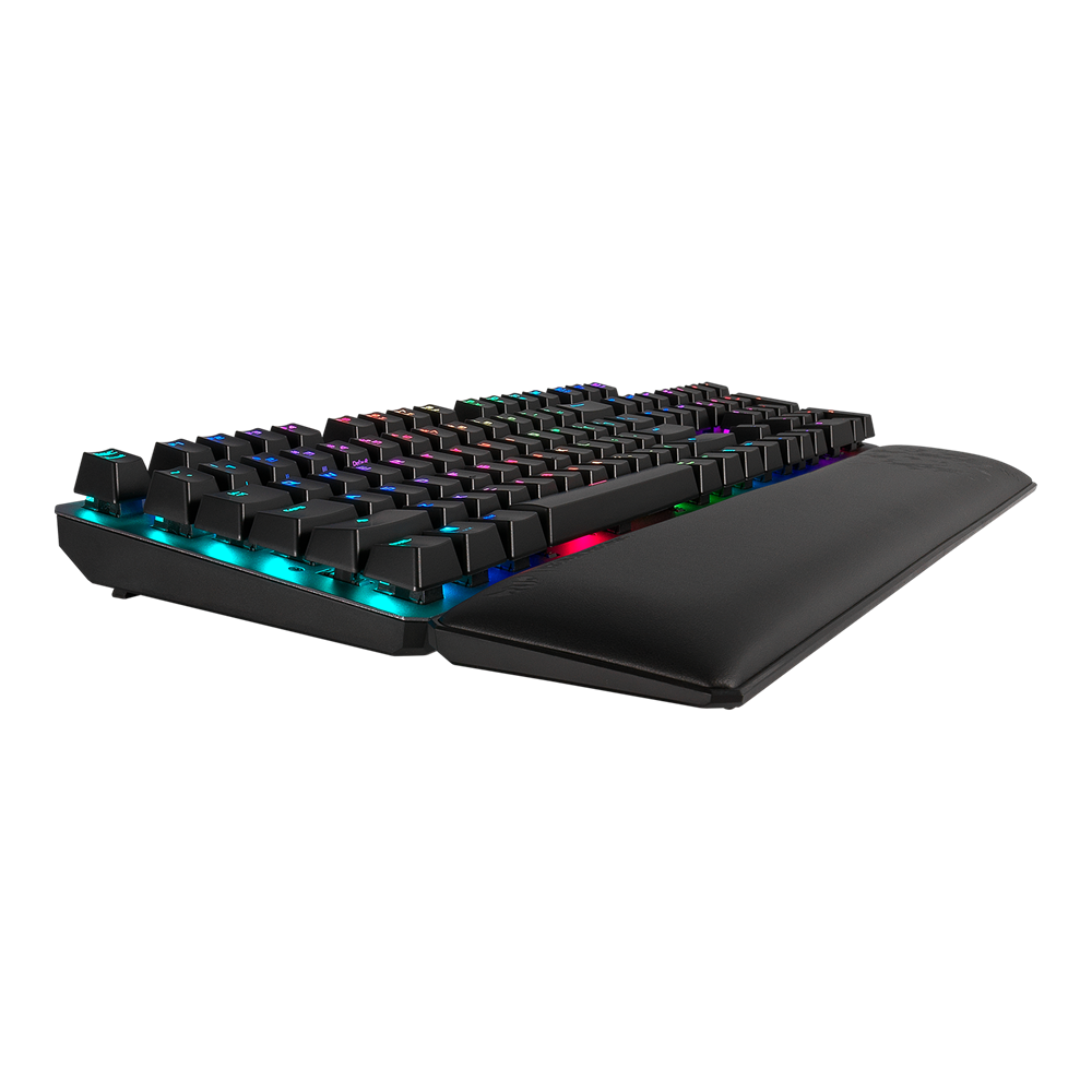 TUF Gaming K7 כוללת משענת ארגונומית לפרק כף היד שיוצרה מקצף זיכרון עבה והגימור שלה עשוי מעור מלאכותי, נוחות קרירה שמתאימה את עצמה לתנוחה שלך. מגנטים חזקים שומרים על הרפידה המרופדת במקומה במהלך הגיימינג ומאפשרים לנתק אותה במהירות כשברצונכם לשנות את זווית ההתקפה או להכניס את המקלדת לתיק.