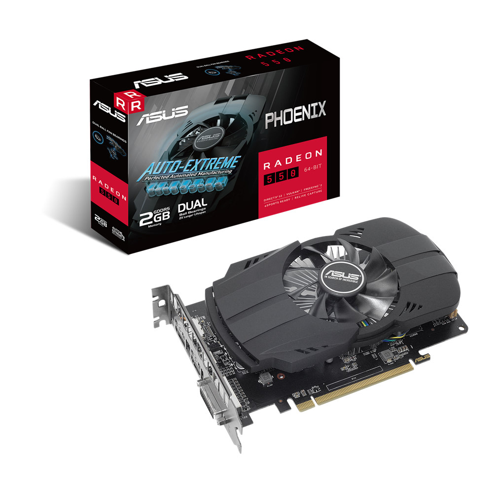 Phoenixのグラフィックカードは、小型のケースにも幅広く対応できるコンパクトなデザインに、可能な限りの性能を詰め込んでいます。限られたスペースには効率的な冷却システムが必要ですが、Phoenix Radeon™ 550は、デュアルボールベアリングを採用し、IP5X防塵認定を受けたファンを搭載しています。旧式のカードをアップグレードする場合でも、初めてのゲーミングリグを構築する場合でも、Phoenixは最新世代のパフォーマンスを提供する強力なパッケージとなります。