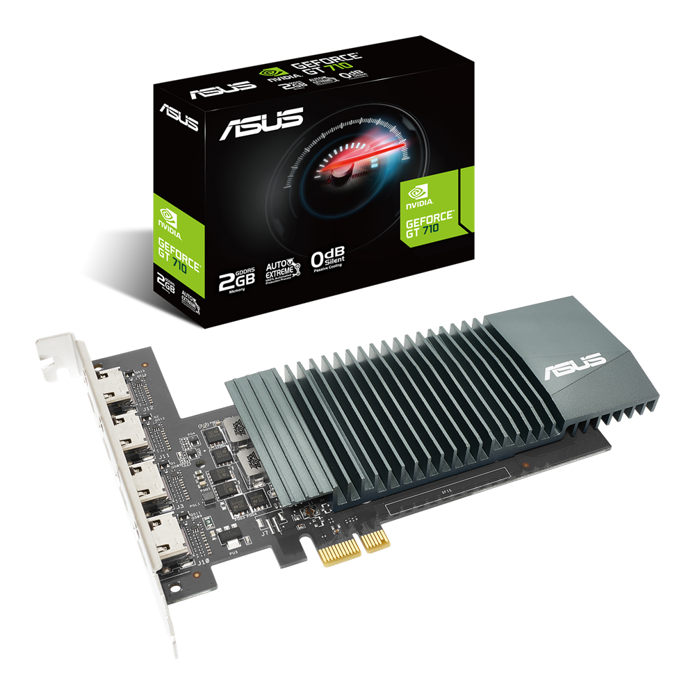 ASUS GeForce® GT 710 是一款被動散熱式單插槽顯示卡,可實現安靜的多顯示器工作效率。